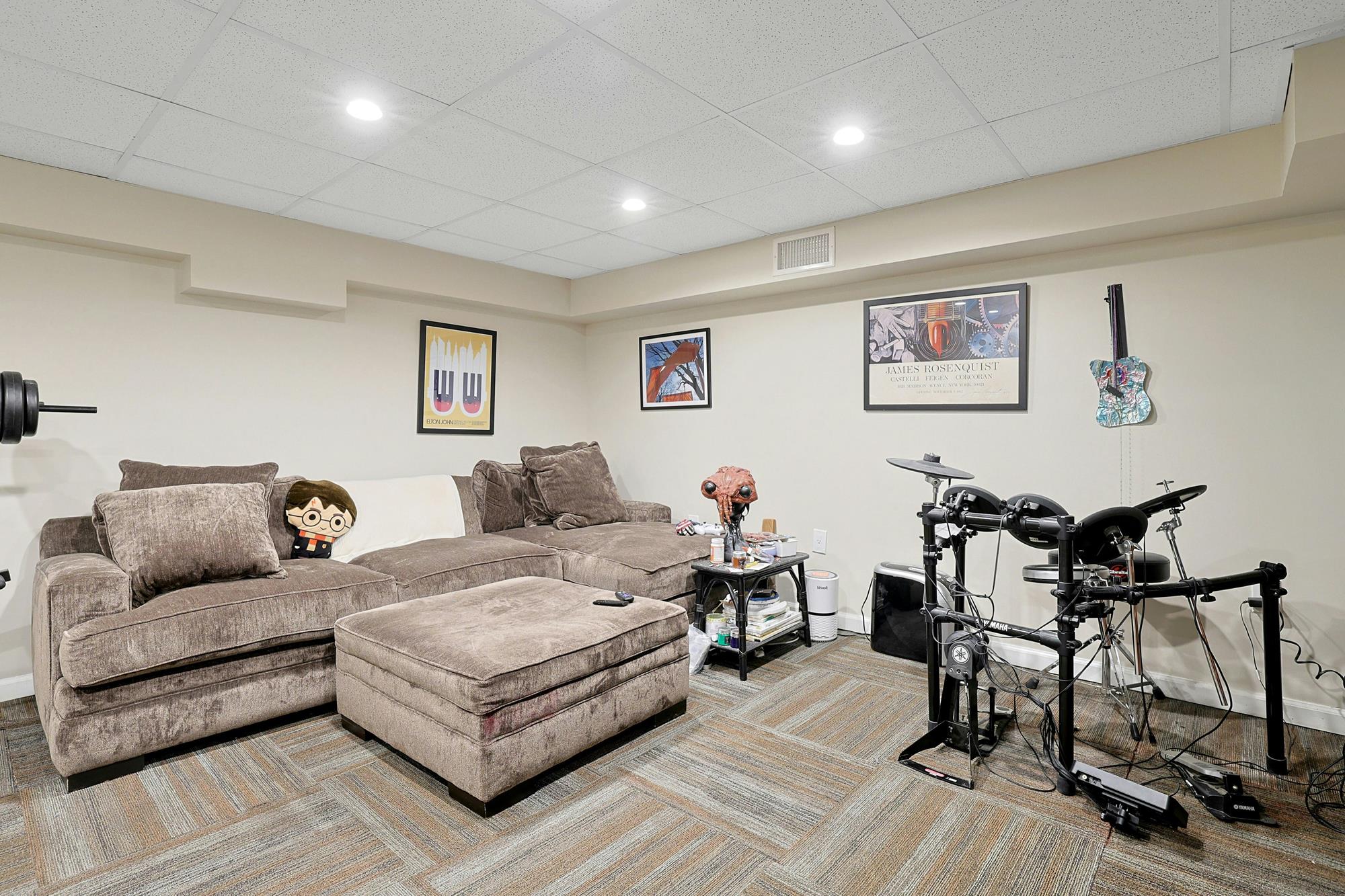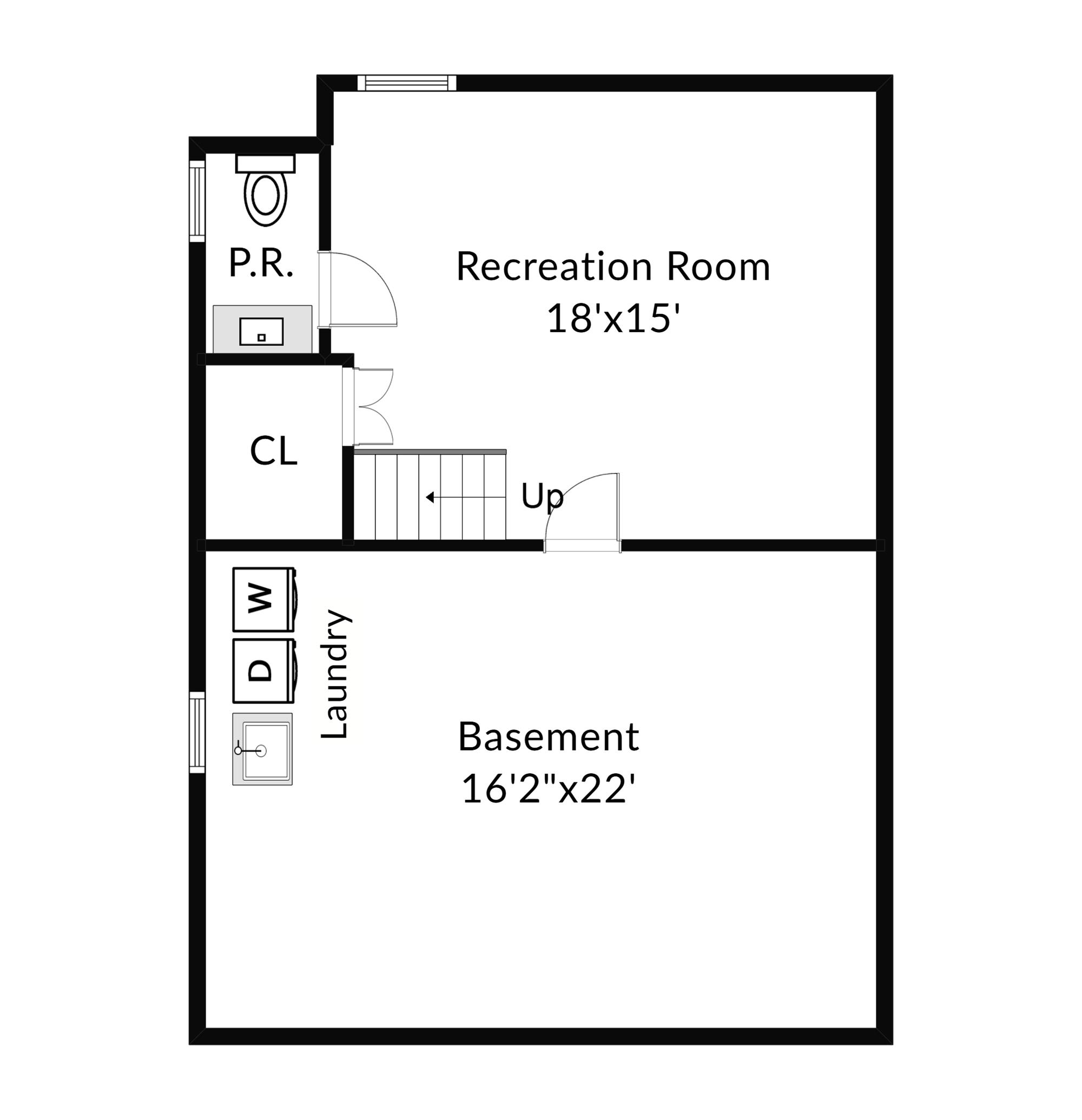 The finished basement has a recreation room, a windowed half bathroom and a laundry/furnace room.