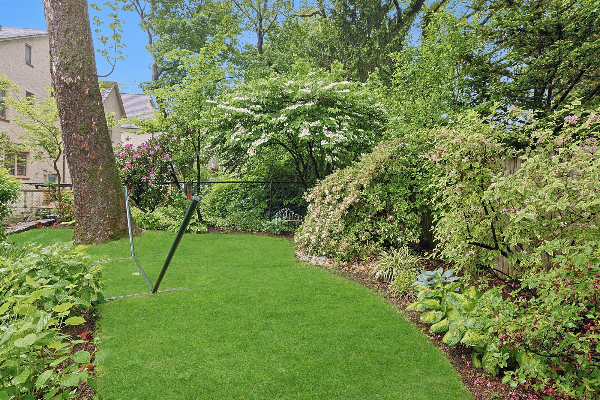 On the second floor, the master bedroom suite is graced with a spacious and windowed 13-by-9-foot dressing room and a renovated master bathroom with a marble vanity and a glass-enclosed rainfall shower. The two additional bedrooms on that level share the renovated and windowed hallway bathroom.