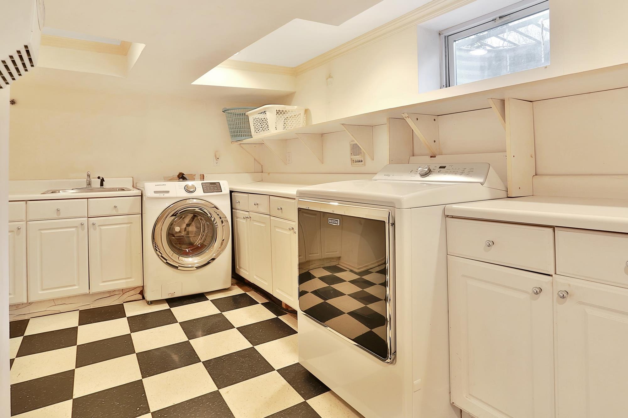 The split-level design features an entry foyer; living room with bay windows and a marble wood-burning fireplace; dining room with sliding glass doors to the rear patio and yard; an eat-in kitchen (with polished granite countertops and Viking, Miele and Samsung appliances); master bedroom suite; marble master and hallway bathrooms; lower-level den with wet bar and powder room; finished basement with Brazilian cherry-wood paneling, custom built-ins, private office (possible guest bedroom), laundry room and cedar closets.