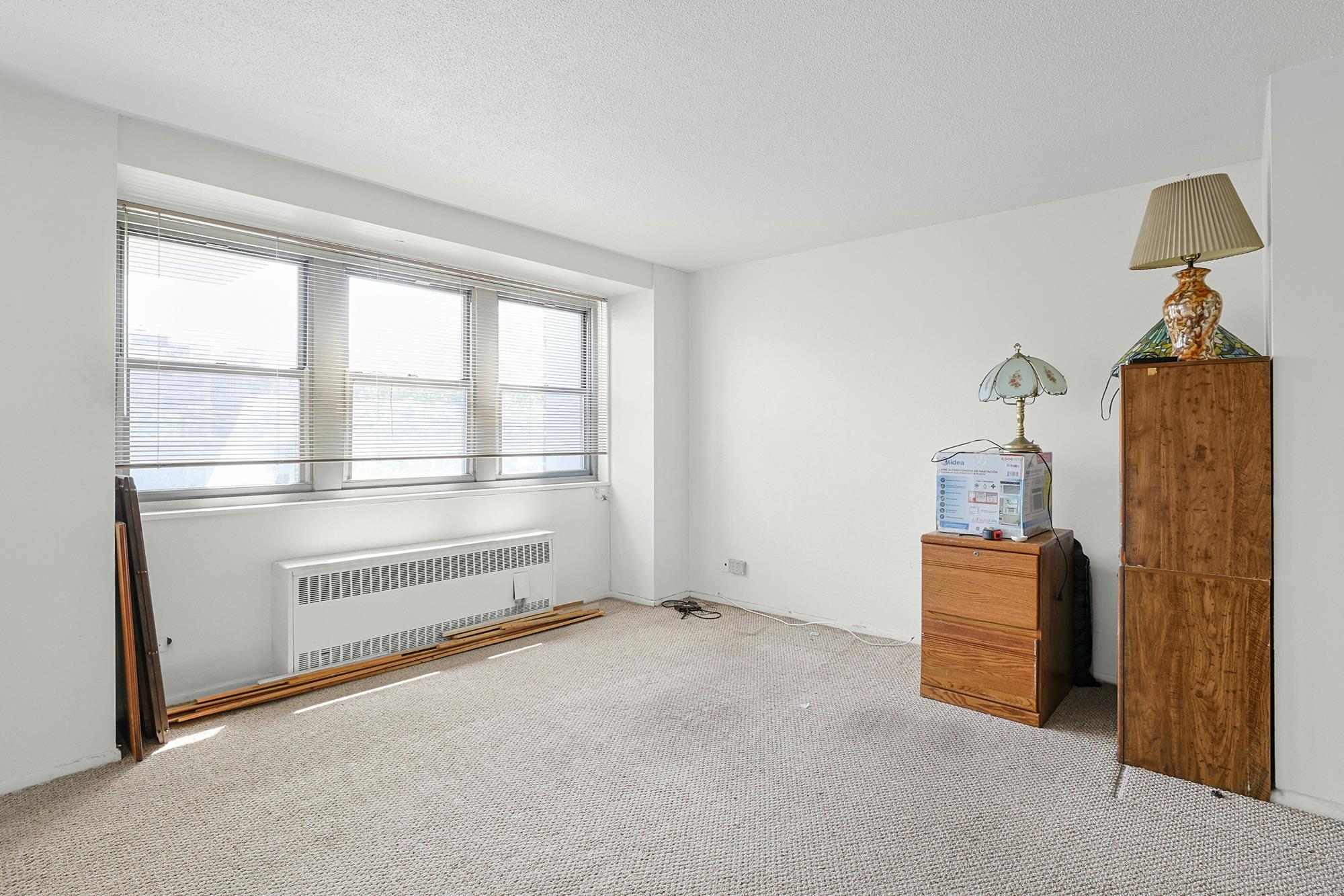 This 2-bedroom, 1-bath apartment is located at Corlear Gardens (290 West 232nd Street), a postwar co-op building. A corner unit, it enjoys an inviting east-facing balcony and leafy, open views.